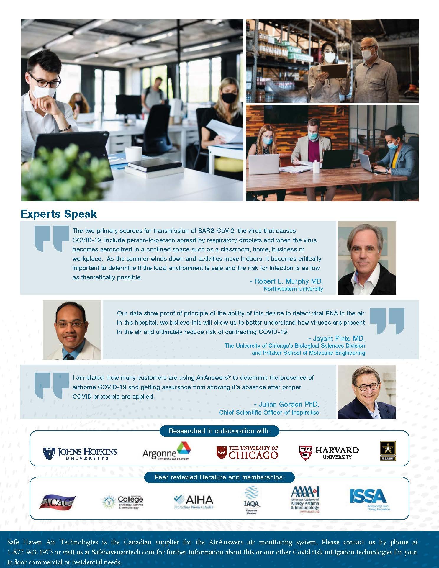 Safe Haven Air Technologies is the Canadian supplier for AirAnswers indoor air monitoring systems. AirAnswers® has the capability to collect ultra-fine particles (100 nano-meters) in the air including allergens, moulds, bacteria, and viruses including the capture of airborne COVID-19.